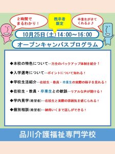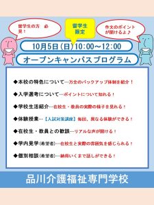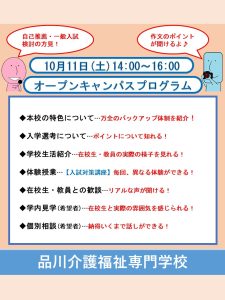 【品川介護福祉専門学校】★10月のオープンキャンパスのお知らせ★