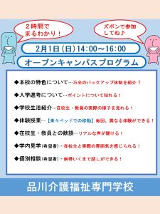 【品川介護福祉専門学校】★2月のオープンキャンパスのお知らせ★
