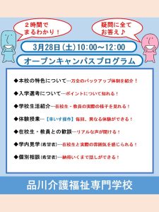 体験授業や品川区修学資金貸付制度などの学費サポート、地元の品川区社会福祉協議会が設立・運営している学校ならではの万全のバックアップ体制についてご紹介します☆